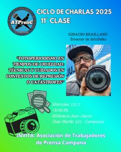 La Asociación de Trabajadores de Prensa de Campana llevó adelante la décima charla de su ciclo de formación 2025, con la participación de la fotógrafa Samanta D’Amario, quien compartió sus experiencia durante 15 años de trabajo en el ámbito profesional, brindando conceptos y consejos sobre fotoperiodismo, así como estrategias para lograr coberturas eficientes y respetuosas …