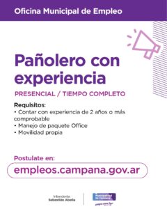 Campana /interes Son para empresas de la zona y las postulaciones deben realizarse a través de https://empleos.campana.gov.ar/. La Secretaría de Desarrollo Económico del Municipio informa que el Portal de Empleo cuenta con tres nuevas búsquedas laborales activas. Las postulaciones deben realizarse a través de https://empleos.campana.gov.ar/ ANALISTA DE INFRAESTRUCTURA (Especialista en Networking) Se busca un perfil …