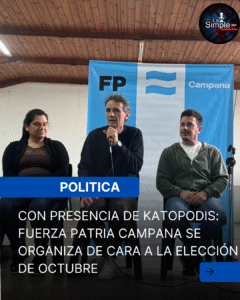 Con presencia de Katopodis: Fuerza Patria Campana se organiza de cara a la elección de octubre Con la presencia del Senador electo, junto a concejales, referentes de diversos sindicatos y sectores y militantes de Fuerza Patria, se reunieron para celebrar el resultado historico de la reciente elección histórica en la ciudad y para organizarse …