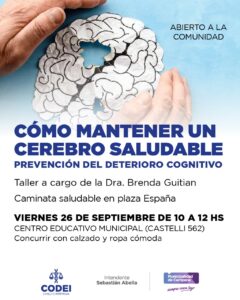 Invitan a participar de una charla informativa sobre Alzheimer El encuentro organizado por el Municipio será este viernes 26 de 10 a 12 en el Centro Educativo Municipal (CEM) y estará a cargo de la Dra. Brenda Guitian. También habrá una caminata saludable por la Plaza España. En el marco del Día Mundial …