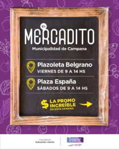De 9 a 14 horas, el viernes estará en la Plazoleta Belgrano y el sábado en la Plaza España. Este viernes 26 en la Plazoleta Belgrano y el sábado 27 de septiembre en la Plaza España, los vecinos podrán realizar sus compras en “El Mercadito de Campana” con ofertas imperdibles en distintos rubros. …